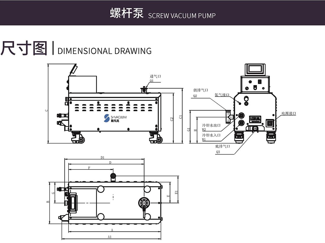 进气口气体吹扫接口,可根据实际工艺情况选择使用,也可用于低温条件下帮助预热真空泵。泵前过滤器:真空泵进气口可根据实际工况,选配合适的过滤装置,最大程度避免异物对泵造成伤泵排气口配置:系统排气口配有水冷消音器、止回阀,降低排气温度,防止气体返流。